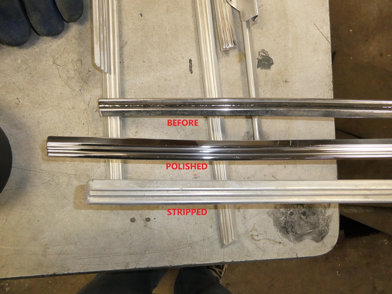 With the parts stripped, you sand and buff them like a stainless steel moulding. To protect them and to keep them from turning dull over time, I clear-coated them with Cerakote MC-160 High Gloss Ceramic Clear. I had to buy a small paint gun