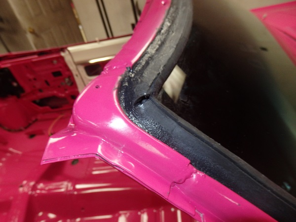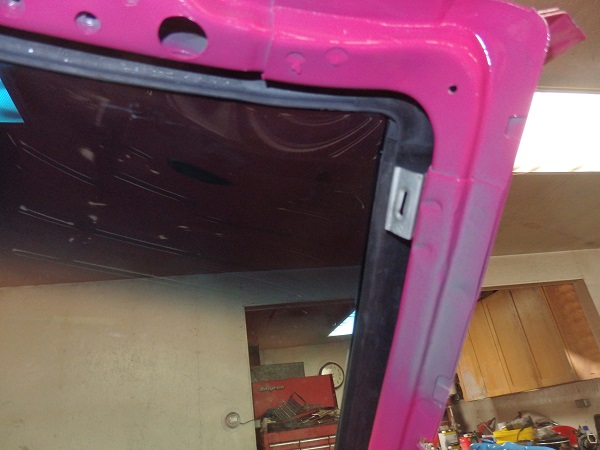 holes are a little elongated. There are two clips that are in the inside at the top of the A-pillars, which are for the plastic A-pillar mouldings. The clips cannot be installed after the glass is in. I was missing one and soon discovered that the repos are too brittle. I was luck enough to find some used ones on line, thanks to classifieds on www.ForBBodiesOnly.com. |