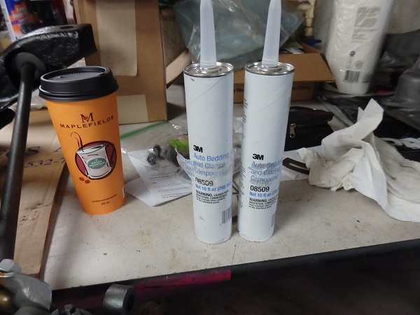 3M 8509 Auto Bedding and Glazing Compound is the proper stuff for setting the weather seal. There should be a thick bead layed down along the entire windshield opening outside lip. The bottom corners and top corners should recieve a doulbe bead