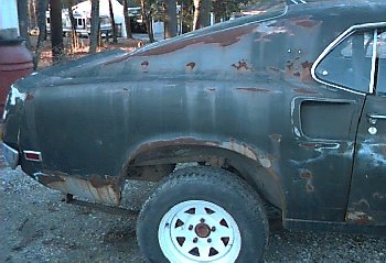 section that welds to the rocker panel. Also a section was cut-off to reveal the side scoop. The quarter skin was
