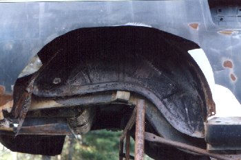 Here is the right rear quarter in its original state. Some hack had filled the big rust hole that
