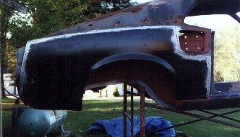 | Except for the final filler work, this was completely done with the body setting on of a set of contruction staging. It took me about 24 hours of labor to get from start to finish. |