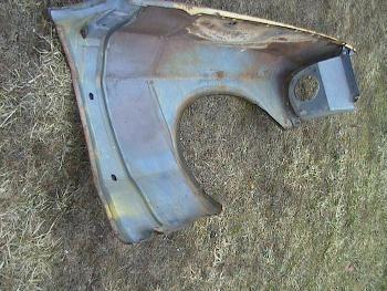 I was able to get a good used rust-free fender for $175 from a salvage yard in Florida. This is what it looked like when I got it.