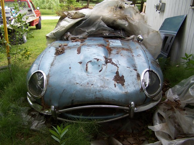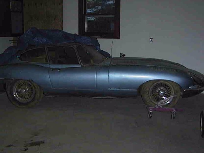 The XK150 Roadster was saved and was later restored (later to appear in Hemmings Classic Sports Car magazine). The XKE was considered a "Total Loss" by the insurance company and was sent to the insurance auctions. My father spotted the car while bidding on other collisions pieces and was able to get it for only $750 plus the buyer's fee. After sitting on it for a while he decided that he would never restore it, so I took it off his hands for $1200.