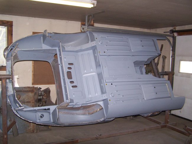 With the inner tocker panels installed the tub was ready for the floors. But first the interior was primed. The under dash area is hard to get at with the floors installed so this was the