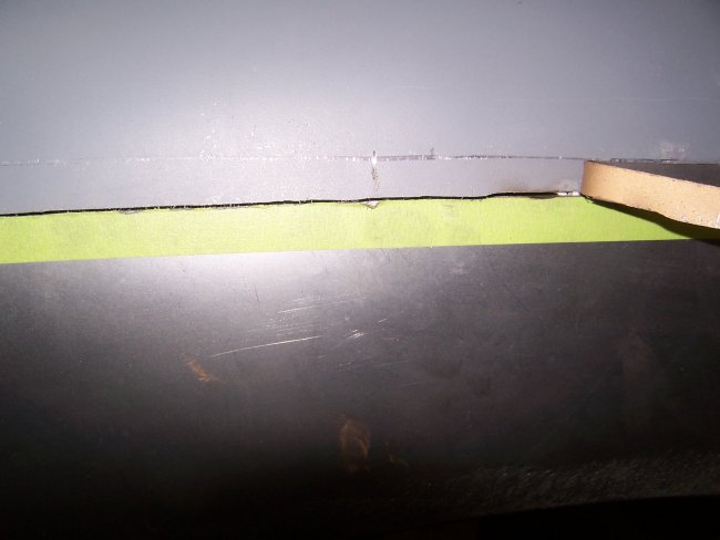 into a $858 panel and tossing out 2/3 of it! Using the reduced panel as a reference a smaller section was cut away from the car. In the fourth picture you can see where the rear wing was