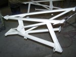 Here are some pictures of the engine and bonnet support structure after painting. I had to paint them after the rest of the car was painted due to the space limitation in my garage.