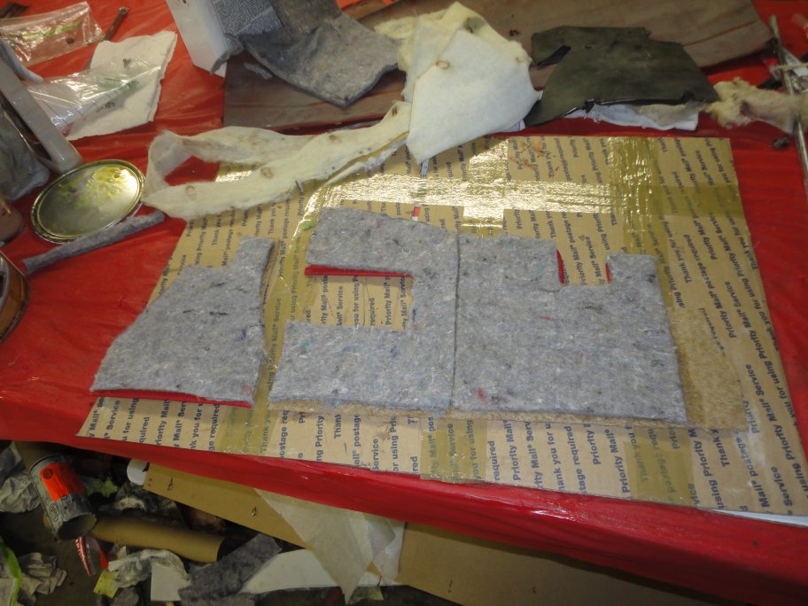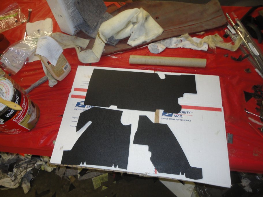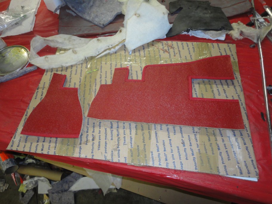 66) To make installation easier, the jute padding was glued to the underdash harduras. Then the pieces are glued to the underside of the dash.