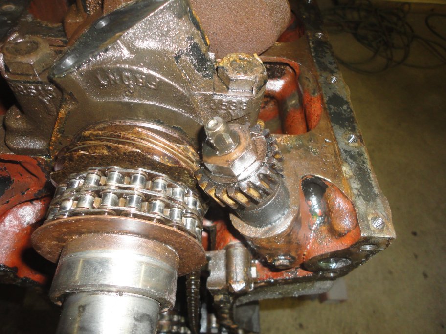31) The crank timing gear and distributor gear slid right off with a little persuasion.
