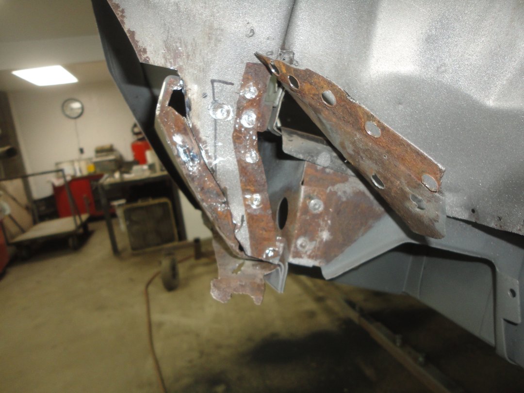 opening for the door latch pin. It was about 3/8" too low. To preserver the original factory spot welds I removed the