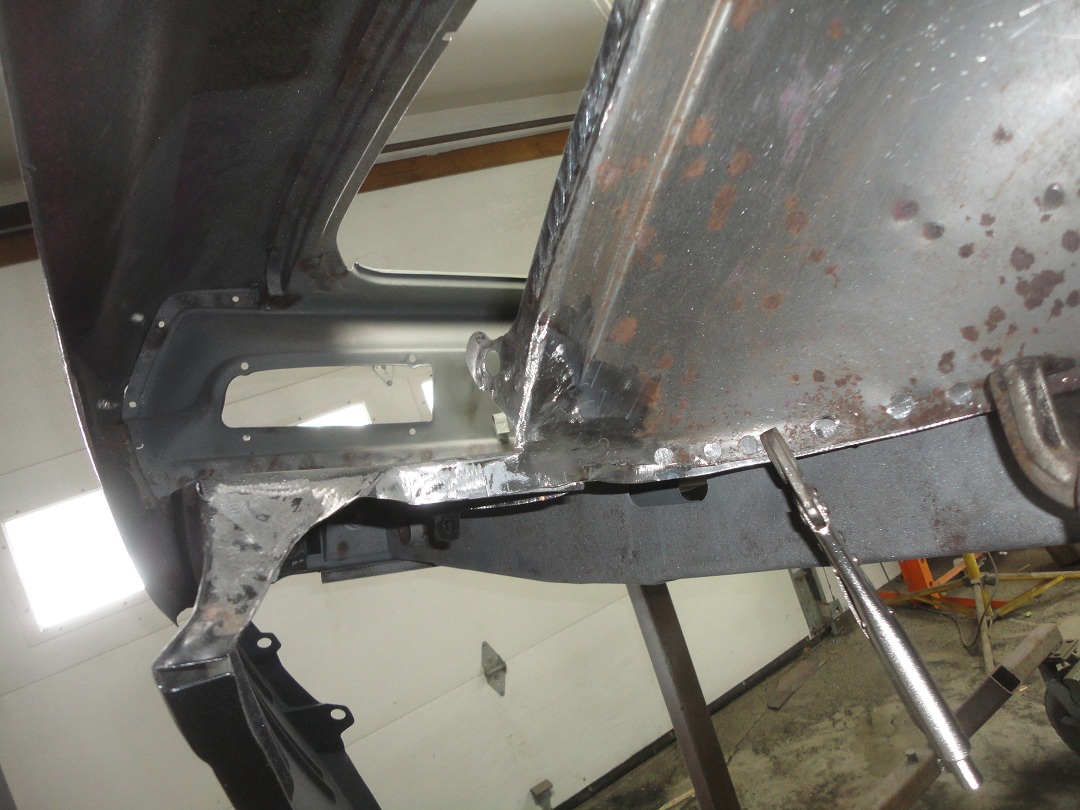 97) This picture shows the pinch welds at the rear of the outer wheelhouse where it meets the trunk drop off.