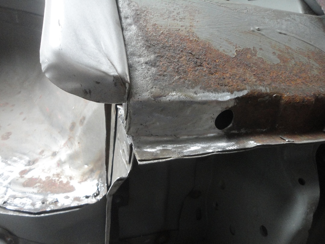 inside of the car. The seam was burried in factory seam sealer, which had to be ground away since it catches on fire rather easily.