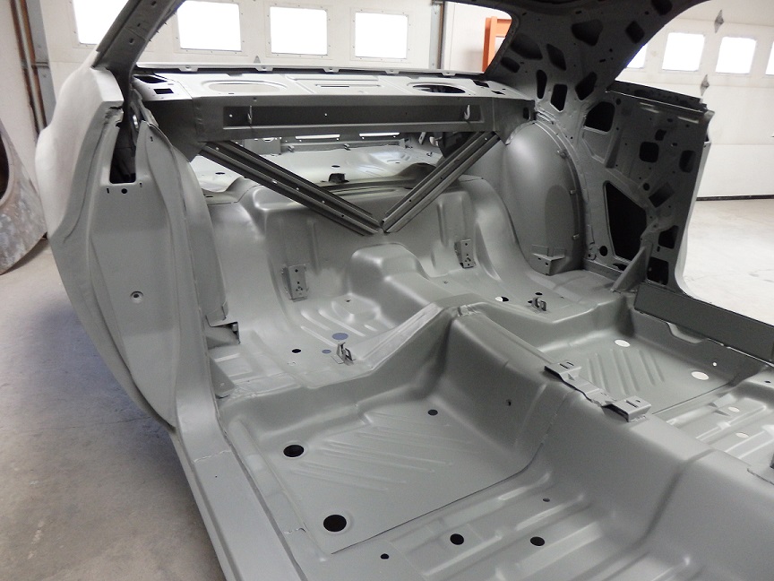 160) Here is a final shot showing the trunk. I made sure to drill the trunk hanger holes and fit the trunk hanger plate prior to priming. Since the car is single exhuast I only had to do one side.
