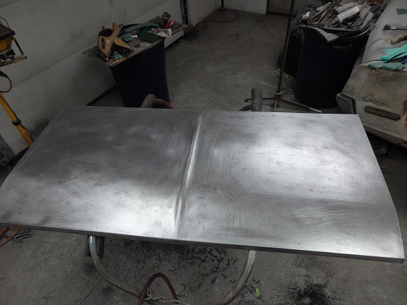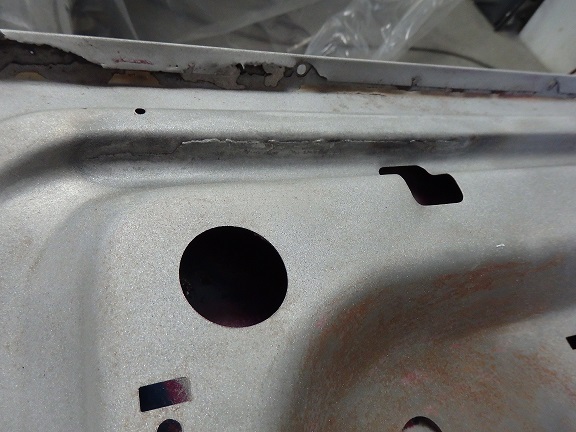 195) The seam repair took a bit of time. I cut the rusted sections out while leaving the original edge in place. In this picture I had cut off one piece. There were six pieces in all that needed repair. I sandlbasted the joint clean and welded in a new pieces that were shaped like the original pieces that were cut out.