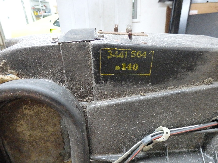 268) Here is the A/C Heater Box freshly removed from the firewall. Stamped on the top is the partnumber and assembly date code.