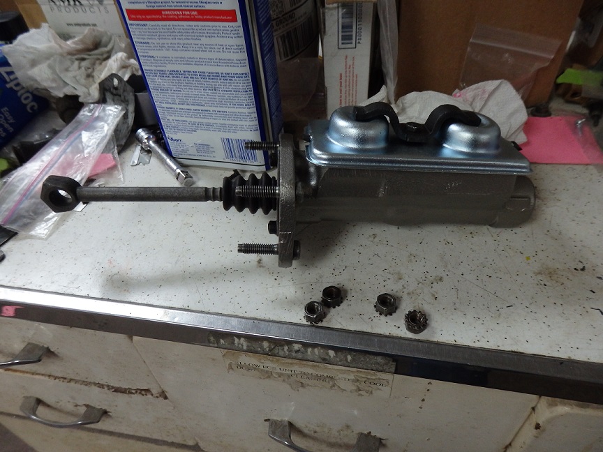 The manual brake master cylinders have studs pressed into them for mounting. The nuts, which install from the inside of the car, are red dyed zinc. I had none of