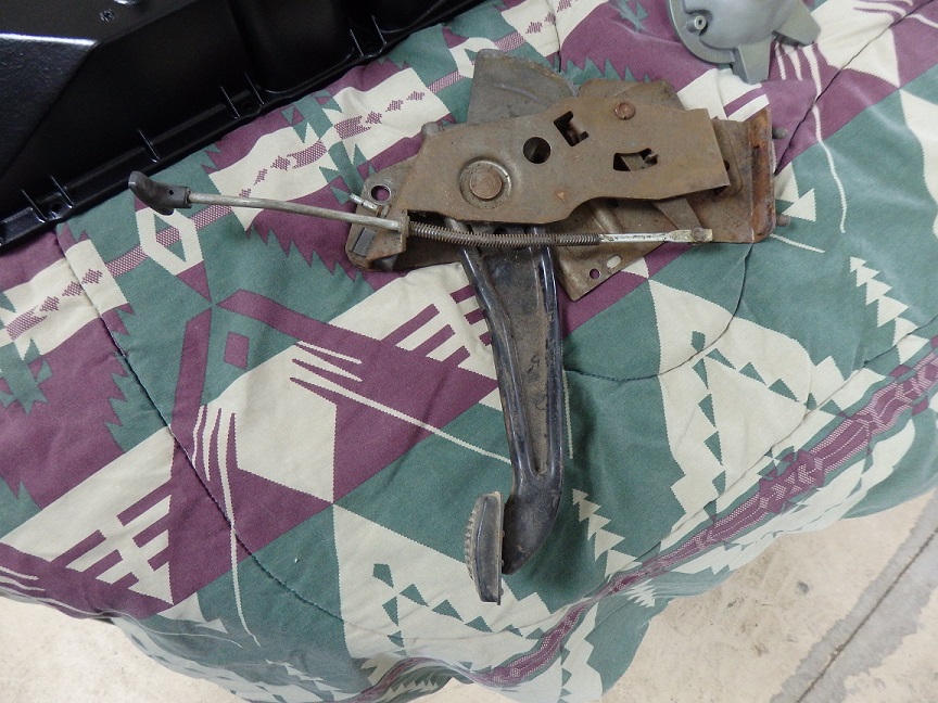 281) The parking brake assembly, 1970 only design, was a little harder to do. It doesn't really come a part. I removed the handle, by drilling out the rivet. But besides the switch and the rubber