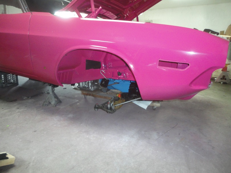 358) Before installing the engine, it's a good idea to get as much of the engine compartment components installed as possible. Remember, the steering column should not be installed until after the engine is in.