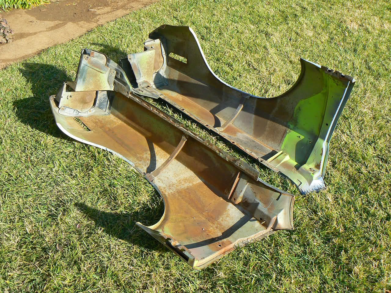 Before I got started doing any work I located some rust free front fenders. I was able to locate a pair from a 1971 that were originally painted Sublime. They cost me $1200 for the pair even though they weren't perfect, but I guarantee that they will fit better than any repo on the market.