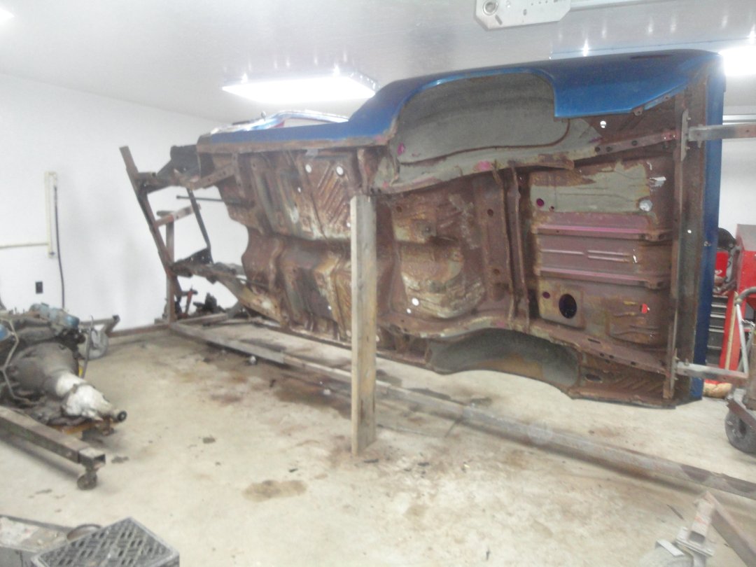 The car actually sat all spring, summer and fall before I started to work on it. I had a lot of things to finish up on the 63 Jaguar before I could start a new project. I also remodeled the interior of my shop which was long overdue. Finally, with winter setting in and some free time on my hands I decided to dismantle the Challenger and put it on the rotisserie (December 2014). I am not going to bother going into detail on how I took the car apart. Though I did take about 900 digital pictures and recorded about a half dozen videos during the taredown process.