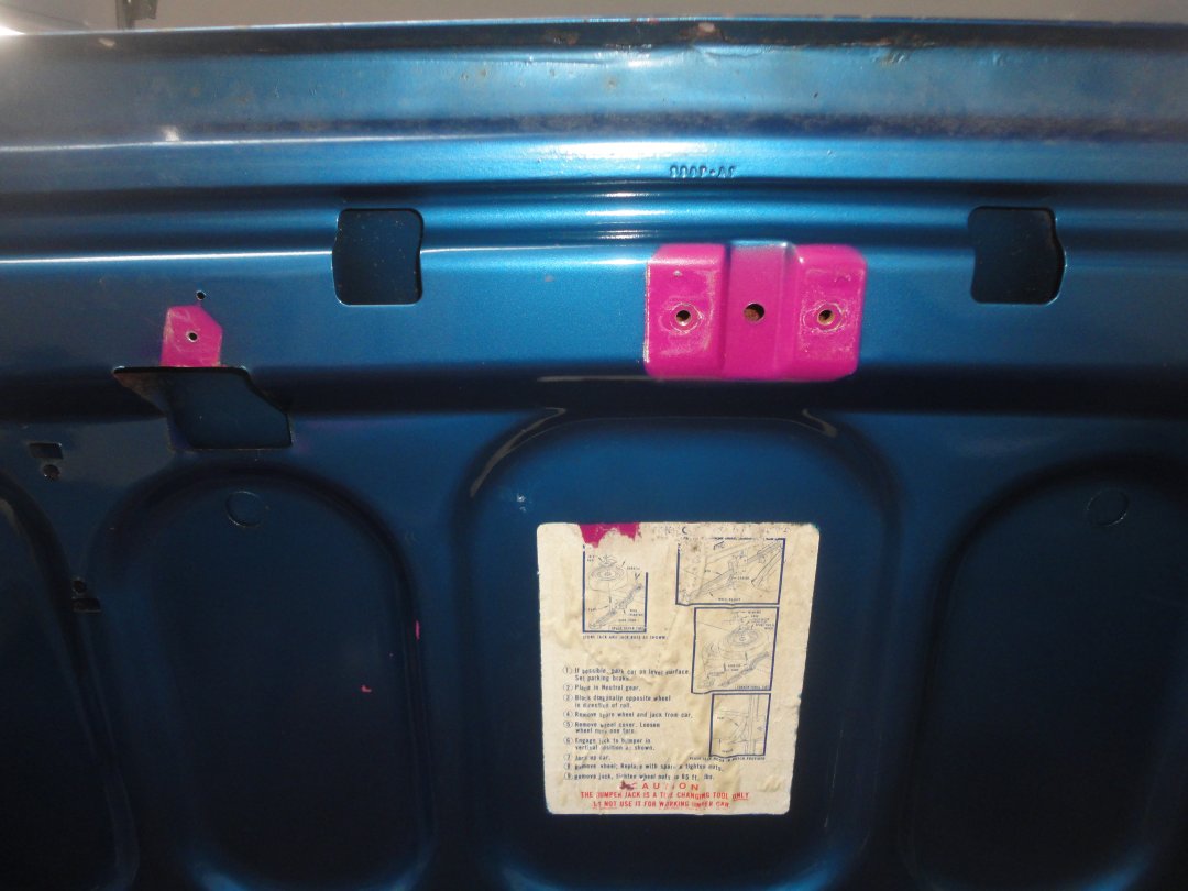 When the trunk latch and catch were removed it was obivious that they were not installed when the car was painted. Some cars have these items installed prior to paint. I'm glad this one didn't since I think it makes a car look sloppy when the latches are painted over.