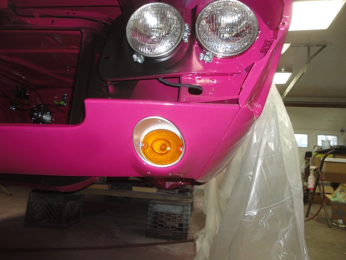 382) The parking lamps needed new pigtails and some freshening up. I bead blasted the housings and painted them. To get the original yellow chromate look I just misted on some of the leftover Quasmoline that I used