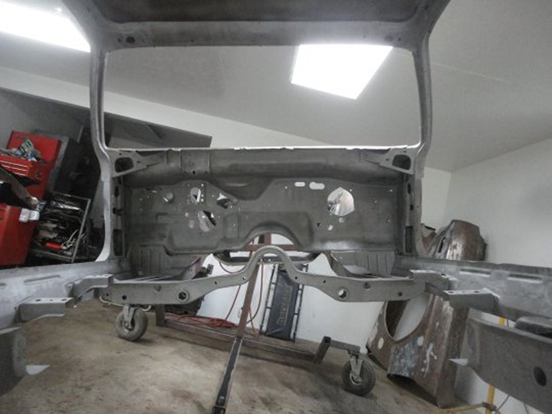 3) I stopped sandblasting at the upper rear crossmember. It is actually quicker to replace the crossmember than to sandblast, prime and fill in