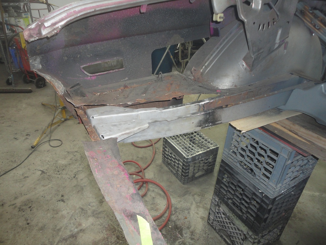 of the trunk pan to fit to the rear of the rear seat floor pan. The humps above the shocks were about an 1/4 higher on