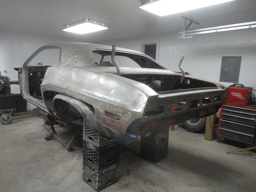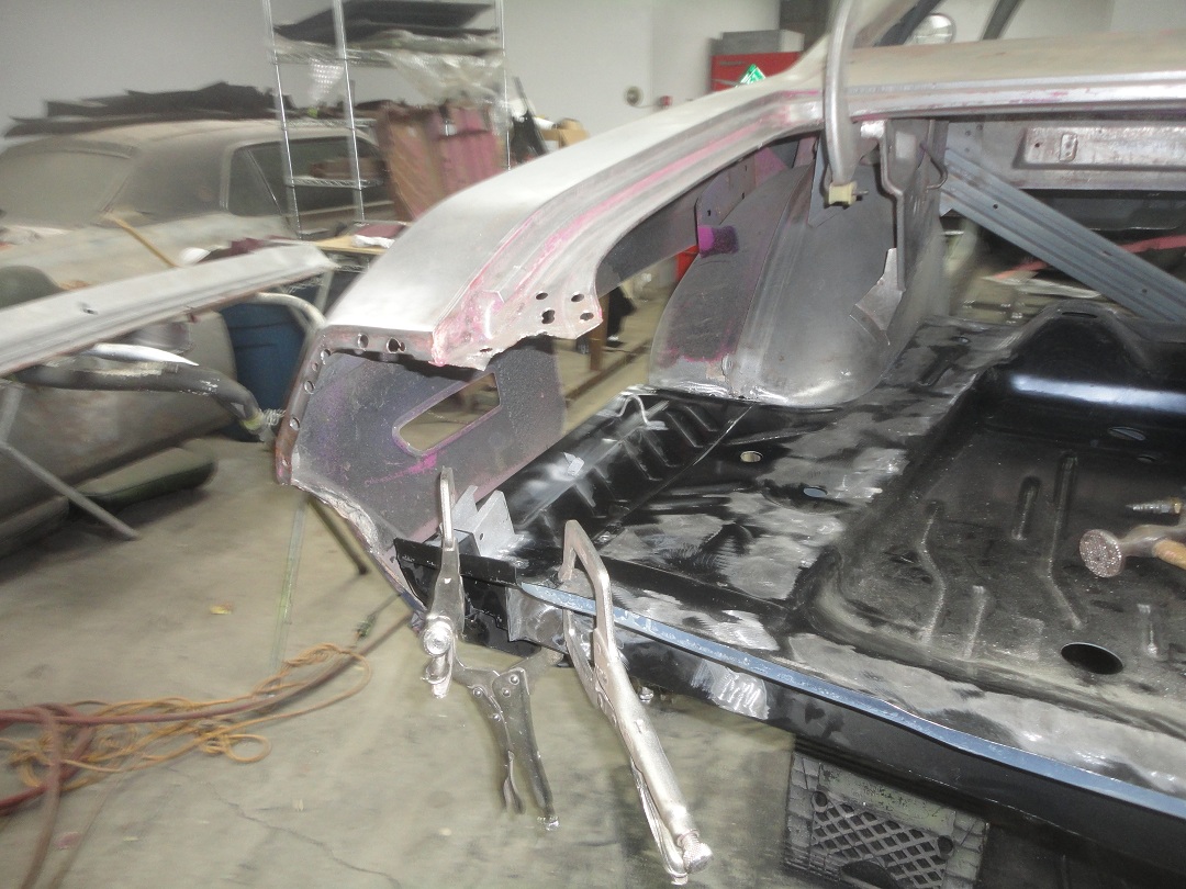 69) The bead gets welded down to produce a good fit to the quarter panels. Looking pretty close to finished in this picture.