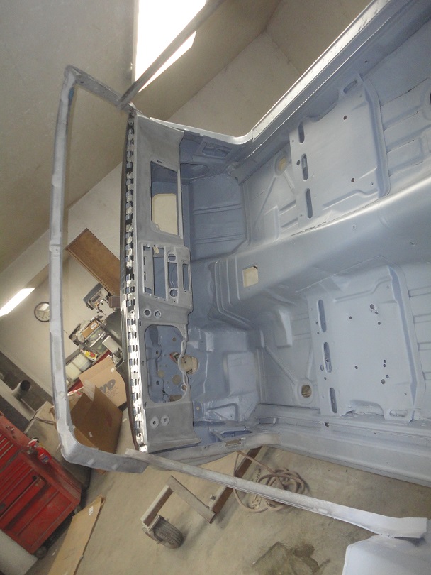 With the dash welded in, the firewall and dash were put in epoxy primer.