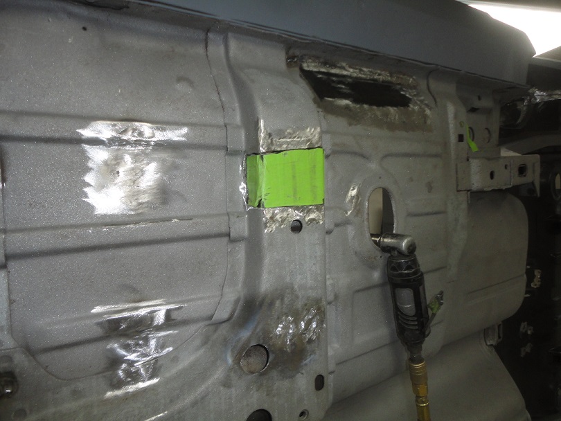 With the welding all done, next came the filler work. As with my other repairs, I started with Evercoat chopped fiberglass filler and fiished with Evercoat Rage Gold polyester filler. The floor was then