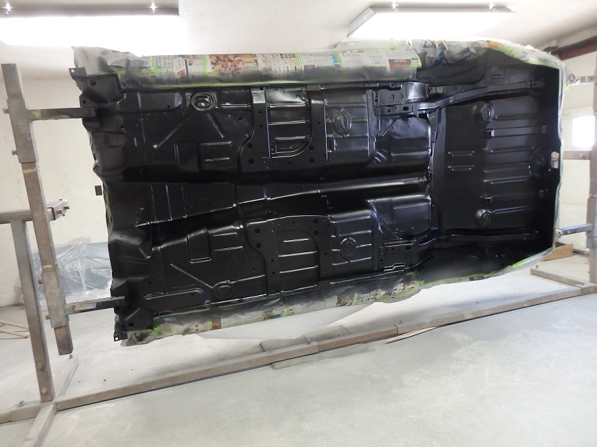 The undercarriage had previously been primed, so it had to be sanded. I sealed it with DP90LF black epoxy primer mixed as a sealer. Once it flashed, I painted the undercarriage with SEMs Hot Rod Black. It had the correct 30% semigloss look I needed. This replicated the black factory primer, but with the added protection of a urethane paint. This is where the judges and many people think I should have stopped..... |