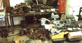 Here's some more parts piled up on a work bench. This is where things start to