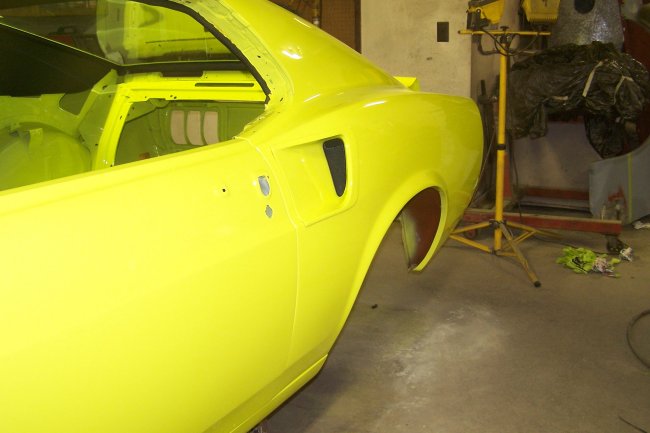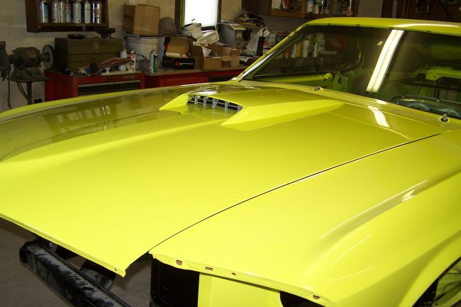 Here is installed. Its one of my favorite features of 69 Mustangs. All 69's had them except for the Boss302's and of course the Shelbys which had functional scoops.
