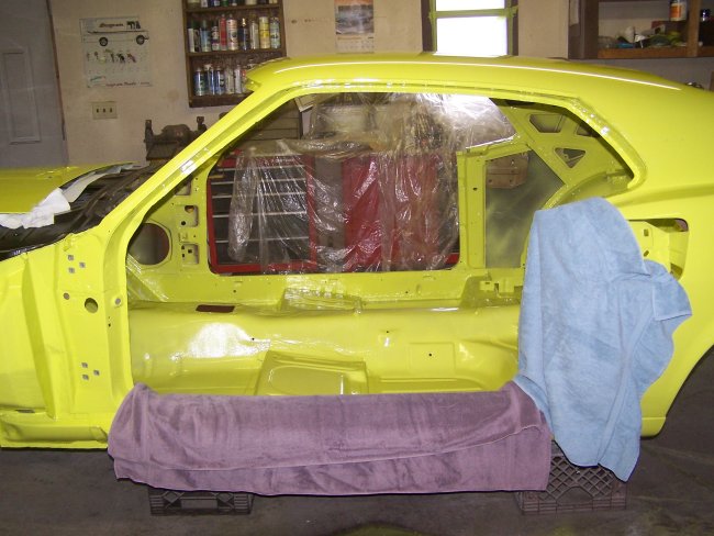 I start assembly with the doors. Even though the paint is cured, it still can be chipped. I use towels to protect the paint. On the bottom of the doors