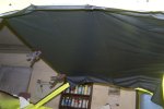 I covered the interior with a sheet of plastic and then sprayed the underside of the roof with 2 coats of 3M interior spray adhesive. I sprayed a good liberal coat of the same adhesive to the back of the new insulation. It absorbs a lot of adhesive so you have to use a lot. After allowing 15 minutes for the adhesive to setup I installed the insulation.