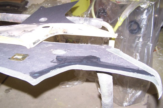 In this picture the LH sailpanel is installed. The panel is glued to the underside of the rear window opening, but not wrapped around the lip. It is glued around the lip by the quarter window however.