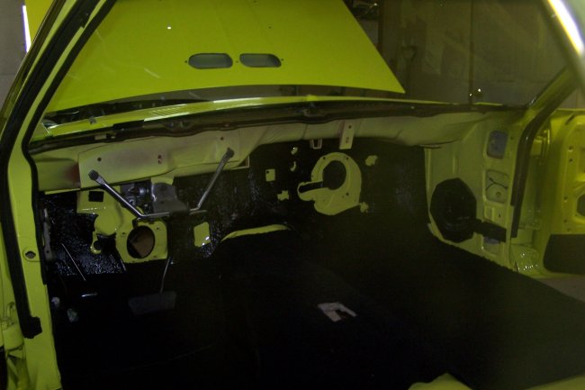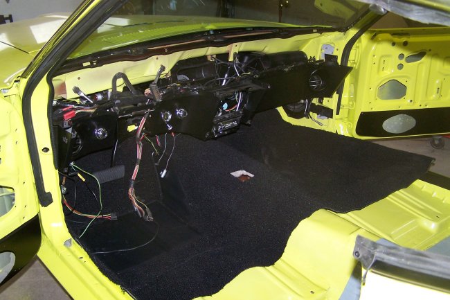 The first thing that goes in is the kick panel vents followed by the left section of the firewall insulation. The dimmer switch is then