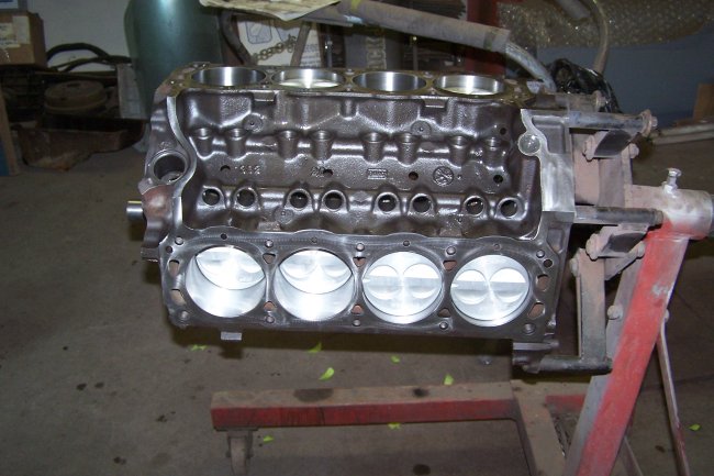 and rebuilt with new valve guides, seals and valves. Here's the block on my motor stand waiting to be assembled.