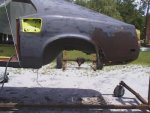 In this picture all of the work is done. The quarter is wiped down and is masked for the primer coat. |