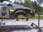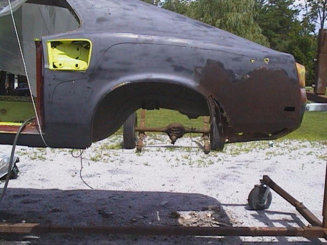 rusted away in the rear. There is also lots of rust damage to the trunk drop-off area. The large amount of rust across the surface of the rear of the