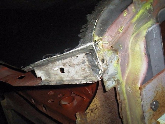 is welded in place. Its also I good idea to seam seal the location were the outer wheel well and the rocker panel meet inside the rocker panel since it is very difficult