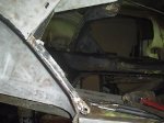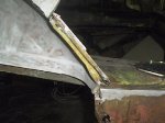 The rear third is done in the same manner accept that the rear trunk brace needs to be seperated from the seam for at least the last inch. This is so that a portion of the new outer wheel well can be slipped behind