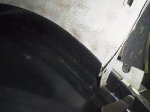 With all of the outer wheel well cleared away, a couple slits are cut in the new outer wheel well before it is trial fitted to the car. As shown here, the rear slit that is cut in the outer is actuall cut a half inch or more forward of the
