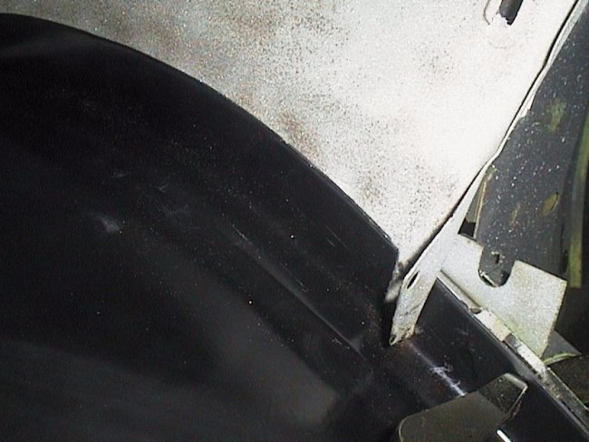 end of the trunk brace. This is so that it can be slipped inbetween the trunk brace and the inner wheel well's standing seam to achieve the original factory look as mentioned above.