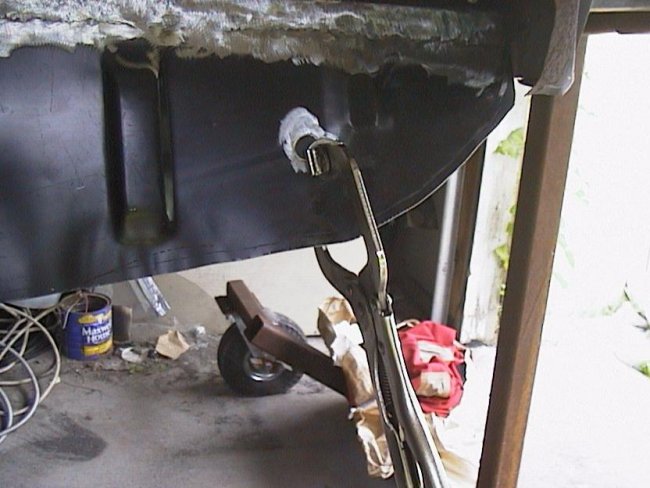 The patch is welded in 4 or 5 places around the perimeter and then the clamp is removed.