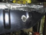 Here is the new dropoff welded in place. From the earlier pictures you can see that the rear hole, which is were the reverse light wires are routed through, is in the wrong location. The hole will needed to be moved to achieve the correct look. The first thing to do is remove the primer from around the hole.