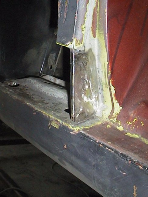 welded in and the weld has been ground down. Sorry, no pictures on how to do this, but as you read deeper into these restoration pages you'll see how to figure it