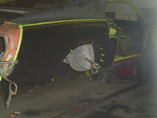 plug or the reverse light wires. Here the new outer wheel well has just been fitted in place. Again the new quarter skin was used to