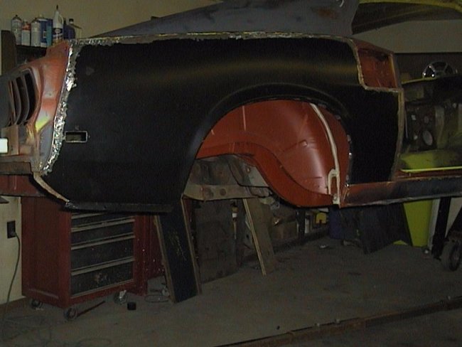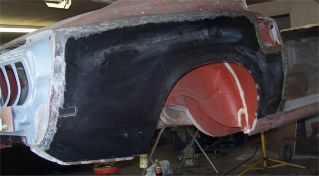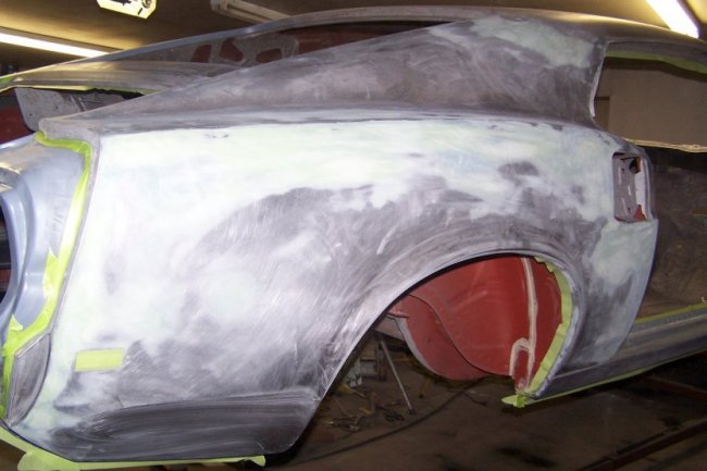 UPDATE (beginning 9/13/05): Once I completed work on the LH quarter I repeated the process with the Right side. Here the quarter has received a coat of